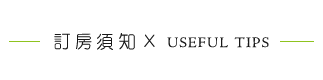 延期住宿:請於住宿前一週告知,將可保留訂金三個月,並於期限內擇期住宿。 |